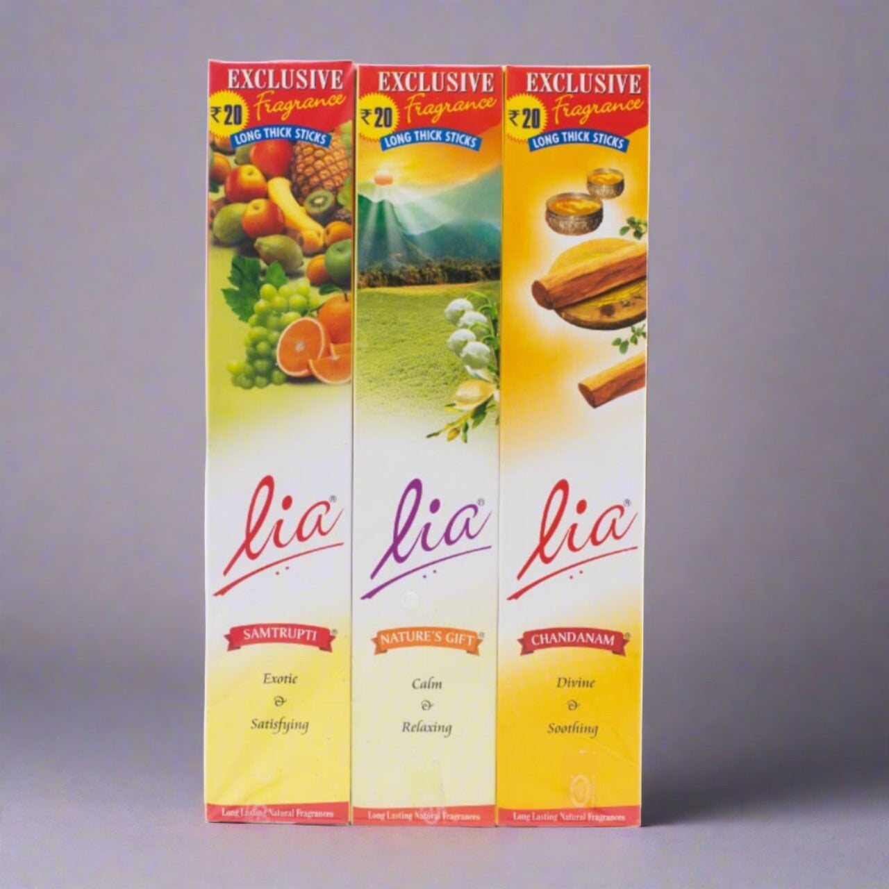 Lia Samtrupti - Lia Samtrupti Agarbatti is a scented bathi made from a refreshing mix of citrus, melon and pineapple. The enticing, fruity fragrance creates an ambience of freshness and bliss. Ideal for daily prayer.