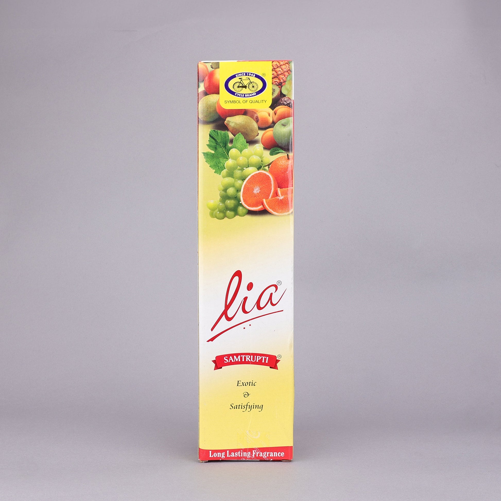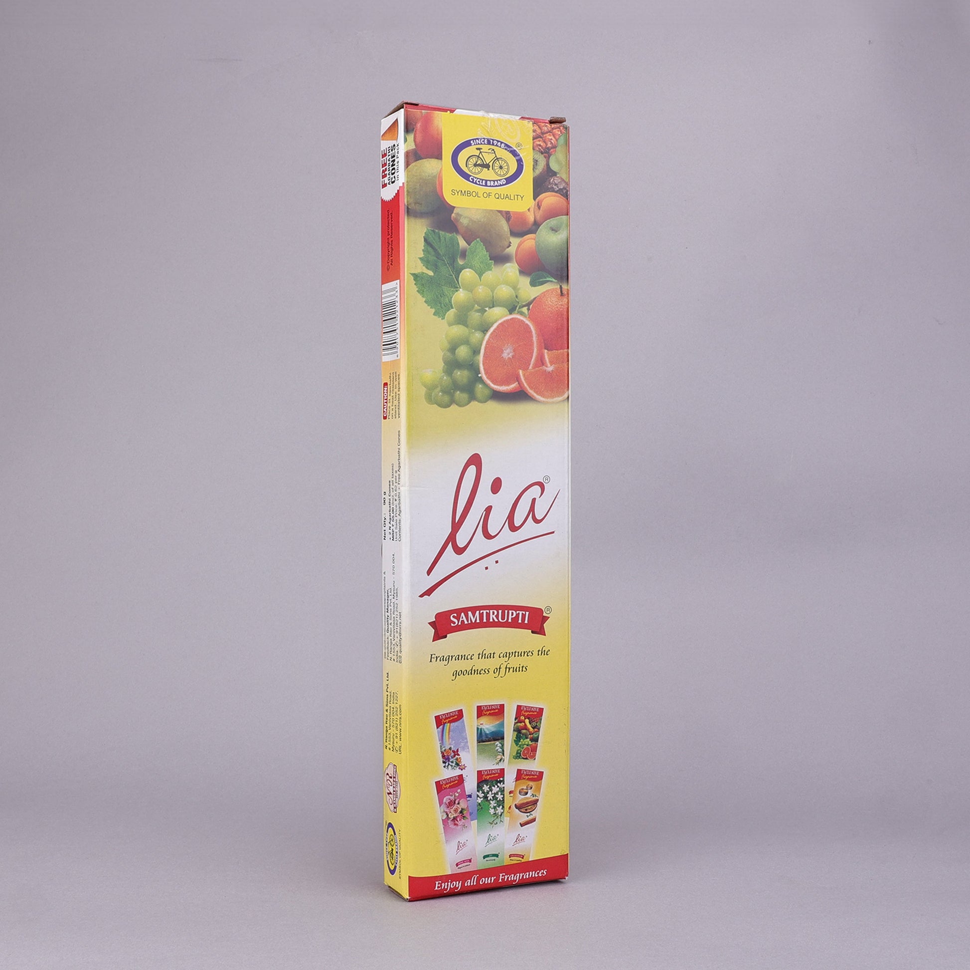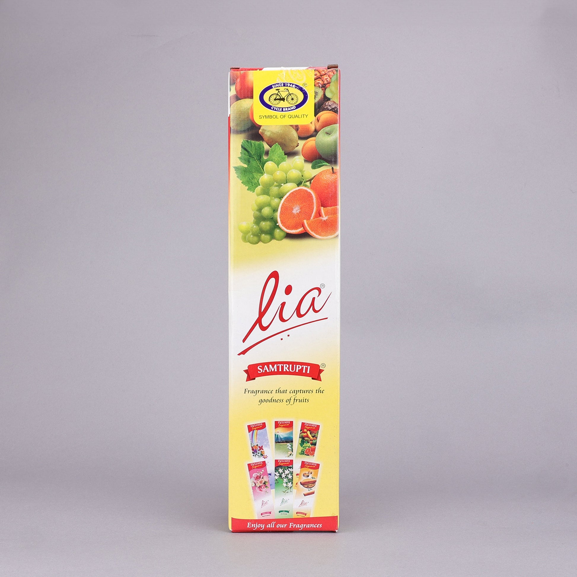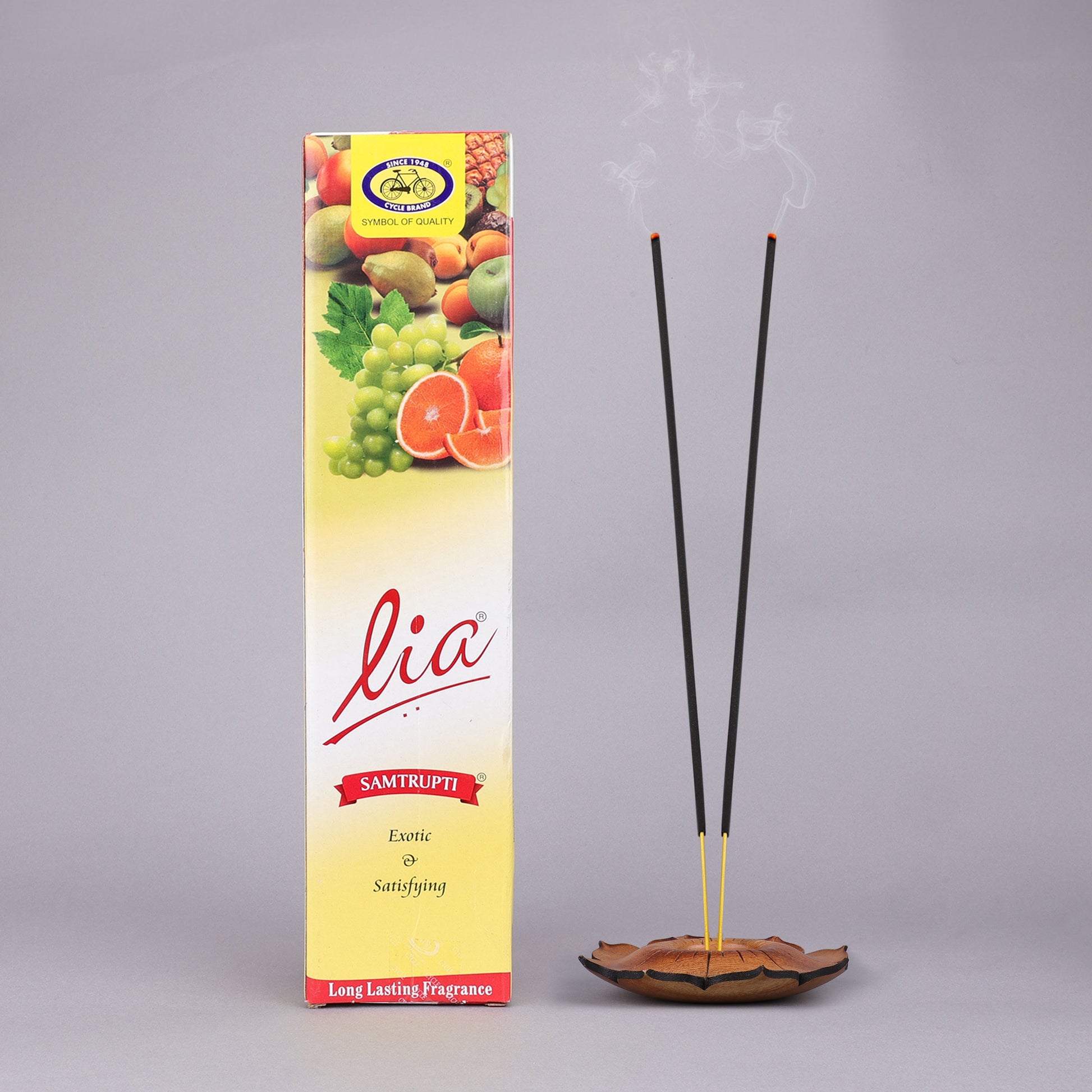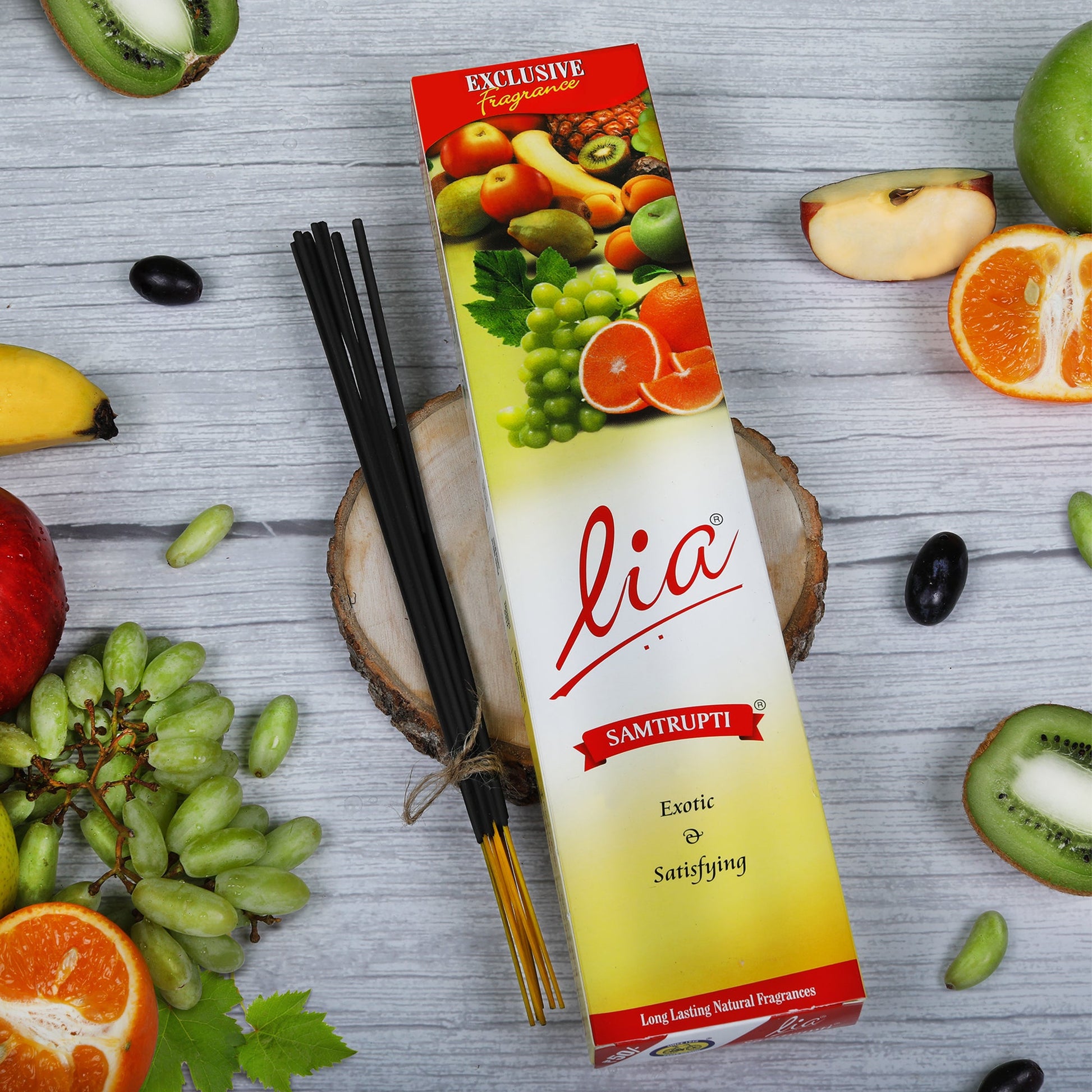 Basketful of assorted fruits signifies contentment and fulfilment; “Samtrupti” and is often offered to the divine as an act of gratitude for all things bright and beautiful. The essence of this humble but lush offering is carefully blended in Lia Samptrupti Agarbatti. A fruity creation derived from a melange of citrus, melon and pineapple that transports you to a tropical paradise. Indulge in a heady burst of fresh, enticing fruits and surrender your senses, which leaves you with a feeling of pure bliss and contentment.