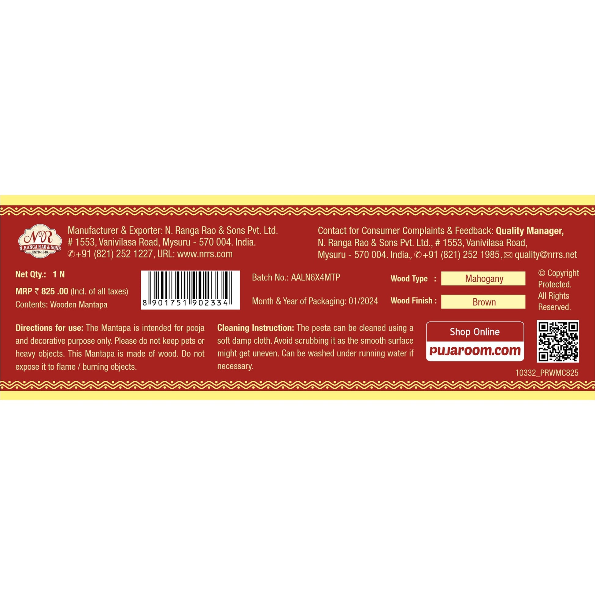 - This Mantapa is made of wood. Do not expose it to flame / burning objects.