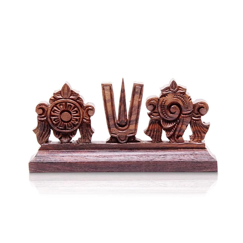 The Wooden Thirunamam is always accompanied by a Shankha (Conch) and Chakra (Wheel) and sometimes also includes Garuda (the Vahana of Maha Vishnu) and Lord Hanuman (his ardent Devotee).